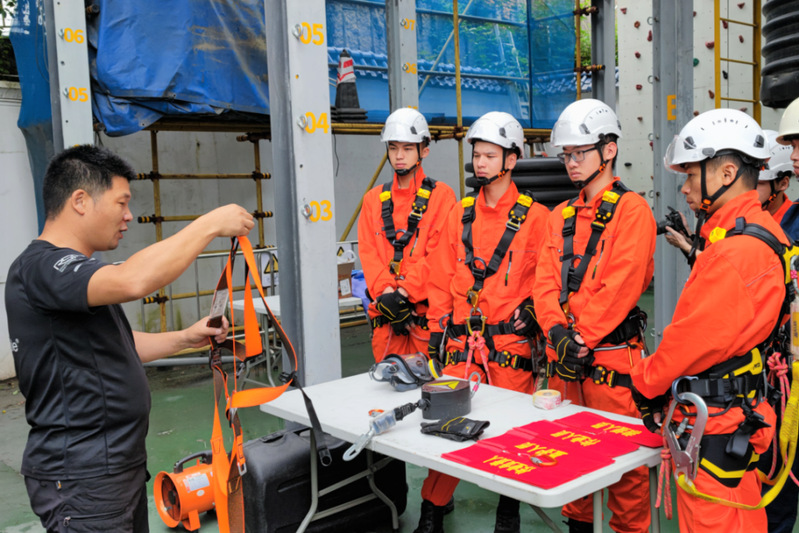 2022年5月28日,福建船政交通職業(yè)學(xué)院技能大師陳貴斌隊(duì)長在學(xué)院應(yīng)急救援訓(xùn)練基地馬尾領(lǐng)航救援救災(zāi)中心為安全與環(huán)境學(xué)院學(xué)生開展有限空間進(jìn)入式救援技能培訓(xùn)。