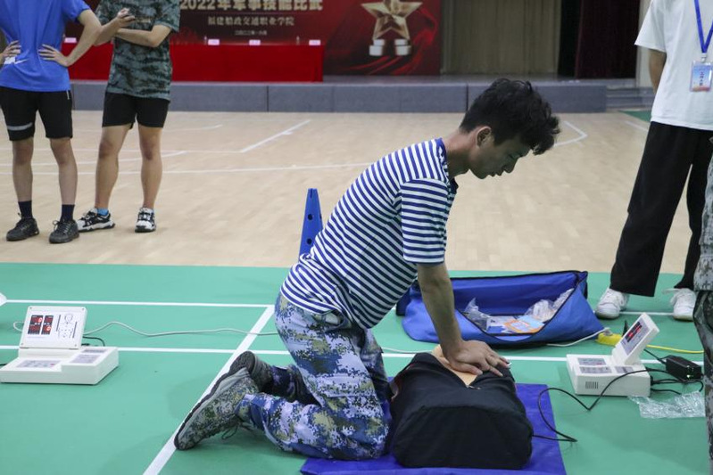 選手參加戰(zhàn)場醫(yī)療救護(hù)現(xiàn)場