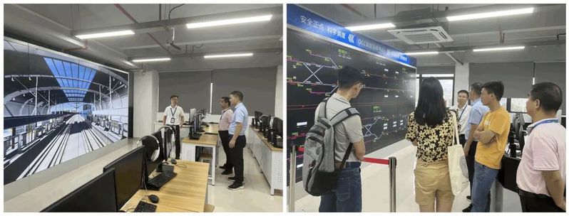 隨后,廖律超院長一行參觀了軌道交通學(xué)院專業(yè)群綜合實(shí)訓(xùn)基地。通過陳天炎院長的詳細(xì)介紹,來賓直接獲得更深刻的交流體驗(yàn),廖律超院長對我院軌道交通專業(yè)群實(shí)訓(xùn)室建設(shè)成效給予了高度評價(jià),并希望基于目前先進(jìn)的實(shí)訓(xùn)設(shè)備展開更加深入的校校合作。