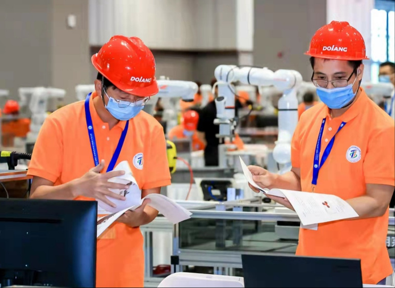 日前,2022年全國(guó)行業(yè)職業(yè)技能競(jìng)賽——全國(guó)工業(yè)和信息化技術(shù)技能大賽(以下簡(jiǎn)稱(chēng)大賽)決賽在深圳市坪山區(qū)舉行,來(lái)自全國(guó)28個(gè)?。▍^(qū)、市)和24家央企的870名高素質(zhì)技術(shù)技能人才同臺(tái)競(jìng)技。我院師生在“工業(yè)機(jī)器人技術(shù)應(yīng)用”賽項(xiàng)中沉著應(yīng)戰(zhàn)經(jīng)過(guò)兩天的激烈角逐,最終學(xué)生組李仙瑞和韓冰峰、張錦雄和林俊杰分別斬獲學(xué)生組一等獎(jiǎng)和學(xué)生組二等獎(jiǎng);教師組廖應(yīng)生、胡恒獲教師組三等獎(jiǎng)。