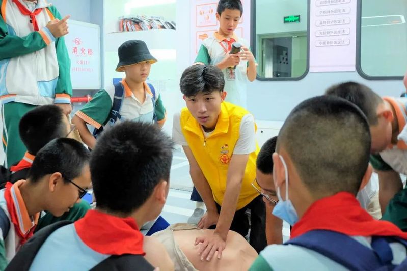 在活動(dòng)過程中,每個(gè)班級的小朋友們分成4組,在志愿者的引領(lǐng)下排好隊(duì)一項(xiàng)項(xiàng)體驗(yàn)。志愿者們流暢地講解著安全知識(shí),帶著小朋友們在輕松愉快的體驗(yàn)中學(xué)習(xí)到實(shí)用的安全技能。