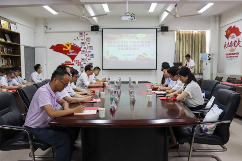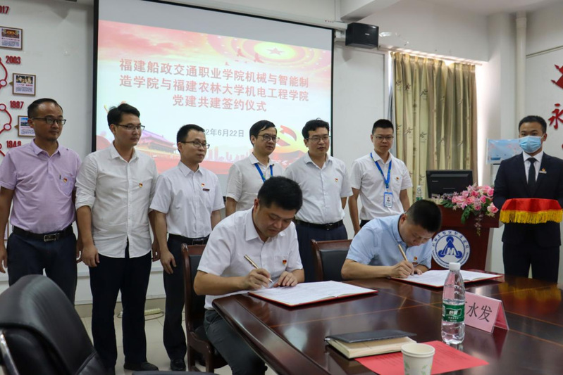 為進(jìn)一步提高基層黨組織凝聚力、戰(zhàn)斗力,不斷推動(dòng)學(xué)院的建設(shè)和發(fā)展,努力構(gòu)建“資源共享、優(yōu)勢(shì)互補(bǔ)、互相促進(jìn)、共同提高”的黨建工作新格局,2022年6月22日,福建船政交通職業(yè)學(xué)院機(jī)械與智能制造學(xué)院與福建農(nóng)林大學(xué)機(jī)電工程學(xué)院舉行黨建共建簽約儀式。