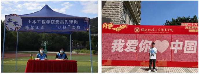在報到當(dāng)天,土木工程學(xué)院在報到現(xiàn)場專門設(shè)立了黨員先鋒崗和“喜迎二十大,永遠(yuǎn)跟黨走,奮進(jìn)新征程”主題打卡點,黨員先鋒崗負(fù)責(zé)向新生發(fā)放《大學(xué)生入黨流程須知》,通告詳細(xì)介紹入黨的基本條件、入黨的基本程序和入黨申請書的規(guī)范寫法等,為新生答惑解疑,拉近黨組織與他們的距離,并給予新生熱情的鼓勵和殷切的希望,指導(dǎo)新生做好入黨的規(guī)劃,為新生在政治上的進(jìn)步指路引航。在打卡點,新生紛紛合影留念,表達(dá)了對校園新生活的無限希冀和“喜迎二十大,永遠(yuǎn)跟黨走,奮進(jìn)新征程”的責(zé)任擔(dān)當(dāng)。