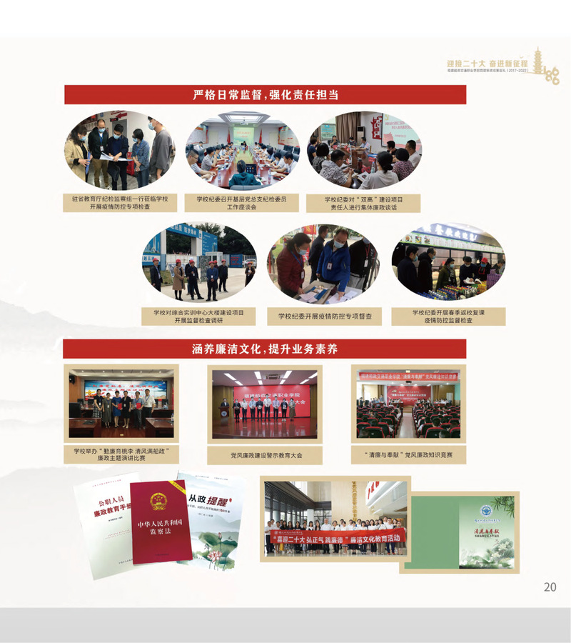 十九大以來(lái),福建船政交通職業(yè)學(xué)院堅(jiān)持以習(xí)近平新時(shí)代中國(guó)特色社會(huì)主義思想為指導(dǎo),堅(jiān)持社會(huì)主義辦學(xué)方向,深入貫徹黨的十九大和十九屆歷次全會(huì)精神,堅(jiān)守“為黨育人、為國(guó)育才”的初心和使命,慎終如始推進(jìn)學(xué)校黨的政治建設(shè)、思想建設(shè)、組織建設(shè)、作風(fēng)建設(shè)、紀(jì)律建設(shè)、制度建設(shè),黨的組織體系和學(xué)校治理體系相得益彰,黨建引領(lǐng)推動(dòng)創(chuàng)新船政、質(zhì)量船政、文化船政協(xié)奏齊鳴,政治生態(tài)、學(xué)術(shù)生態(tài)、文化生態(tài)持續(xù)向好,辦學(xué)效率、辦學(xué)效能、辦學(xué)效益顯著提升!