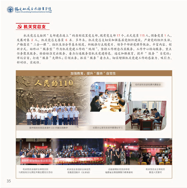 十九大以來,福建船政交通職業(yè)學(xué)院堅持以習(xí)近平新時代中國特色社會主義思想為指導(dǎo),堅持社會主義辦學(xué)方向,深入貫徹黨的十九大和十九屆歷次全會精神,堅守“為黨育人、為國育才”的初心和使命,慎終如始推進(jìn)學(xué)校黨的政治建設(shè)、思想建設(shè)、組織建設(shè)、作風(fēng)建設(shè)、紀(jì)律建設(shè)、制度建設(shè),黨的組織體系和學(xué)校治理體系相得益彰,黨建引領(lǐng)推動創(chuàng)新船政、質(zhì)量船政、文化船政協(xié)奏齊鳴,政治生態(tài)、學(xué)術(shù)生態(tài)、文化生態(tài)持續(xù)向好,辦學(xué)效率、辦學(xué)效能、辦學(xué)效益顯著提升!