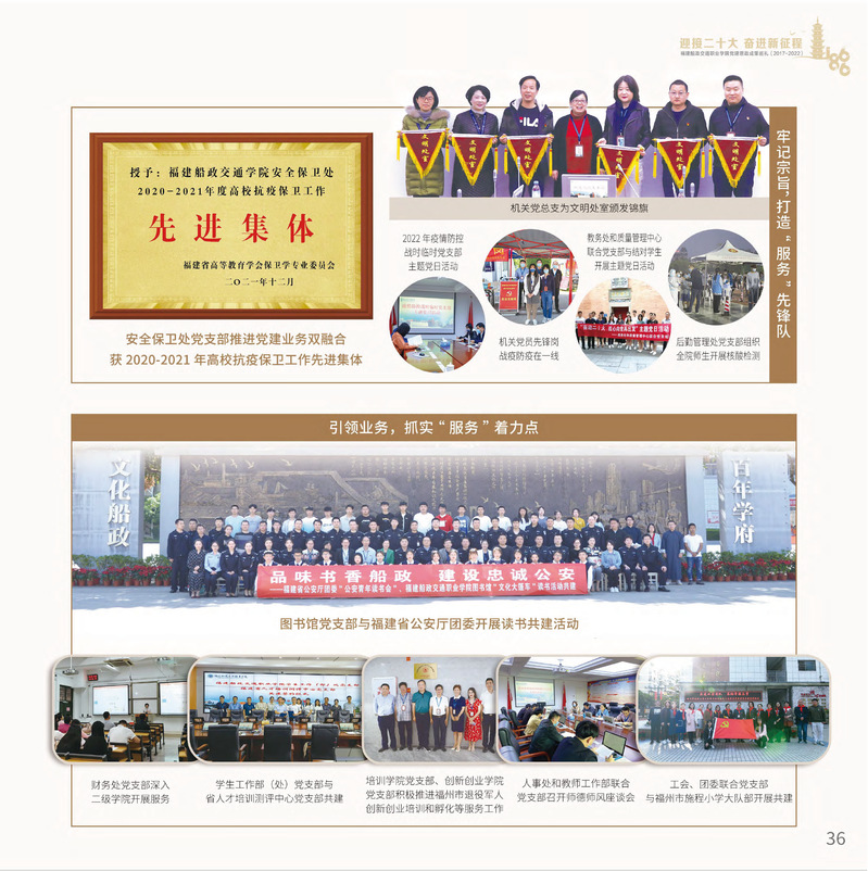 今年是黨的二十大召開之年,是學(xué)校深化綜合改革、加快“雙高”建設(shè)的關(guān)鍵年,是續(xù)寫過去5年工作、回首新時代10年變革的轉(zhuǎn)折年。站在新的歷史起點上,船政交通人將始終沿著習(xí)近平總書記親自為福建擘畫的最美山水圖、沿革船政先賢留下的文化瑰寶、延續(xù)一代代船政交通人接續(xù)奮斗的精神,以飽滿的精神、昂揚的斗志、奮進(jìn)的狀態(tài),開啟建設(shè)中國特色高水平高職學(xué)校的新征程,以優(yōu)異成績慶祝黨的二十大勝利召開!