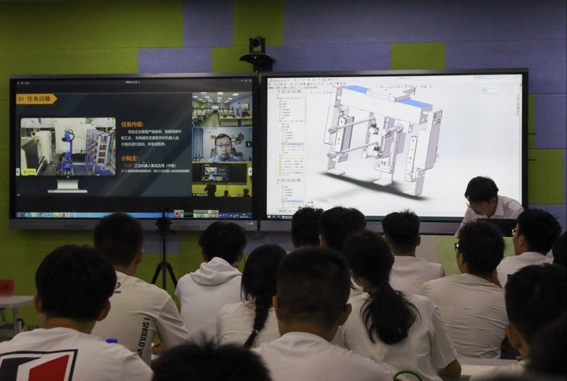 本次活動選擇了制造類契合度高、師資力量強(qiáng)、教學(xué)資源豐富的《工業(yè)機(jī)器人技術(shù)基礎(chǔ)》《液壓與氣壓傳動》等課程作為活動的支點(diǎn),充分利用兩校的優(yōu)質(zhì)師資力量,全面共享前沿教學(xué)內(nèi)容,教學(xué)效果良好。后續(xù)更多專業(yè)也將陸續(xù)開展共享教學(xué)系列活動,這有利于深入推動教學(xué)經(jīng)驗交流,為兩校建設(shè)更多高質(zhì)量專業(yè)積累經(jīng)驗。