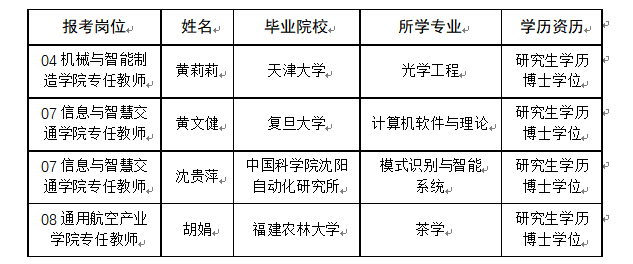 按照《關于印發(fā)<福建省省屬事業(yè)單位公開招聘工作人員考試暫行辦法>的通知》(閩人發(fā)〔2006〕11號)和《2023年福建船政交通職業(yè)學院專項公開招聘高層次人才方案》等文件要求,經報名、面試、體檢、考核等有關程序,經學校會議集體研究,確定黃莉莉等4人為部分崗位擬聘用人員,現(xiàn)予以公示。