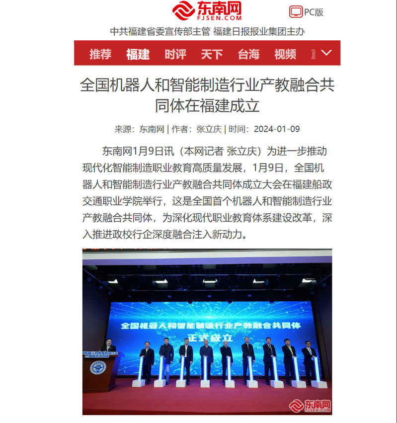 近日,全國機器人和智能制造行業(yè)產(chǎn)教融合共同體在我院成立。中國教育電視臺、福建日報、新福建、福建教育電視臺、東南網(wǎng)等多家主流媒體平臺對此進行集中宣傳報道。