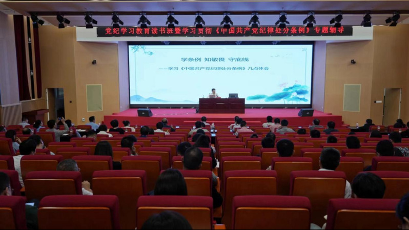 6月5日下午,學(xué)院舉辦黨紀(jì)學(xué)習(xí)教育讀書班暨學(xué)習(xí)貫徹新修訂的《中國共產(chǎn)黨紀(jì)律處分條例》專題輔導(dǎo)報告會。省紀(jì)委監(jiān)委駐省教育廳紀(jì)檢監(jiān)察組負責(zé)同志應(yīng)邀作《學(xué)條例 知敬畏 守底線》專題輔導(dǎo)報告,學(xué)院黨委書記陳宜大主持會議。黨委副書記、院長陳錦輝,黨委委員、紀(jì)委書記張輝和全體副科級及以上干部150余人參加。