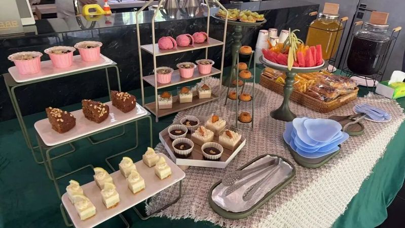 活動現(xiàn)場節(jié)日氣氛濃厚。趣味燈謎區(qū)懸掛著五彩繽紛的謎箋,涵蓋傳統(tǒng)文化、民俗知識、生活體驗(yàn)等豐富內(nèi)容;兌獎區(qū)藍(lán)牙音響、遮陽傘、生活套裝等實(shí)用禮品吸引老師們踴躍參與;茶歇區(qū)精致可口的水果點(diǎn)心,為老師們提供交流互動輕松氛圍;手工冰皮月餅DIY環(huán)節(jié),老師們在面點(diǎn)師傅講解指導(dǎo)下,動手揉面、包餡、壓模,制作出造型雅致、寓意團(tuán)圓的冰皮月餅,共同感受中華傳統(tǒng)節(jié)日的文化魅力與船政大家庭的溫暖情誼。