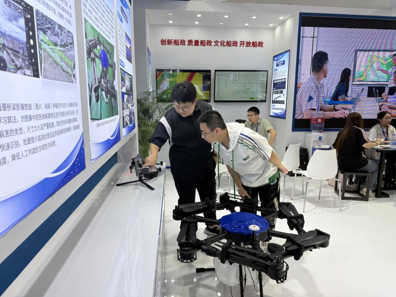 我院受邀參展并在主賓館設(shè)立展區(qū),重點(diǎn)展示了一系列兼具技術(shù)實(shí)力與應(yīng)用價(jià)值的成果,包括傳承船政文化的趕繒船結(jié)構(gòu)復(fù)原模型,聚焦智能裝備領(lǐng)域的 AIS 交通流分析系統(tǒng)、Ener16p 農(nóng)業(yè)植保無人機(jī)、無人機(jī)協(xié)同指揮系統(tǒng)、橋梁無人機(jī)巡檢及AI 病害識別系統(tǒng)等,豐富多元的展品吸引了眾多參會(huì)觀眾駐足咨詢、互動(dòng)體驗(yàn)并拍照記錄。