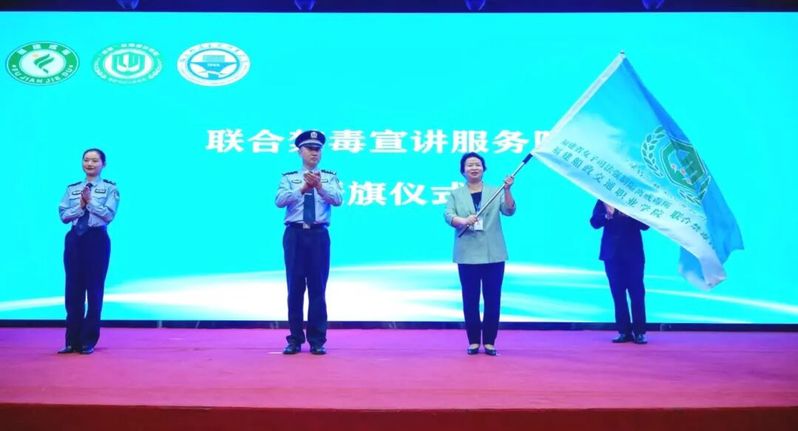 省女子司法強制隔離戒毒所向我院授予“聯(lián)合禁毒宣講服務隊”旗幟,張輝代表學院接旗。