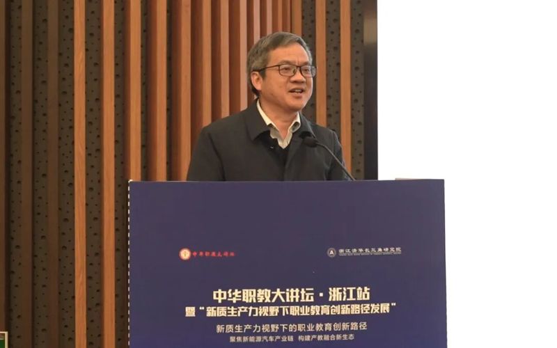 12月6日,由中華職業(yè)教育社指導(dǎo),《教育與職業(yè)》雜志社主辦、浙江清華長(zhǎng)三角研究院承辦、浙江省和嘉興市中華職業(yè)教育社協(xié)辦的“中華職教大講壇”在研究院清華講堂順利舉行。活動(dòng)以“新質(zhì)生產(chǎn)力視野下職業(yè)教育創(chuàng)新發(fā)展路徑”為主題,來(lái)自北京、上海、江蘇、浙江、廣東、福建、海南、貴州等地代表,與新能源汽車、低空經(jīng)濟(jì)等新質(zhì)生產(chǎn)力領(lǐng)域?qū)<遥殬I(yè)院校、行業(yè)企業(yè)負(fù)責(zé)人圍繞職業(yè)教育融合新質(zhì)生產(chǎn)力的發(fā)展路徑與方法進(jìn)行了交流探討。學(xué)院黨委書記陳宜大受邀作典型經(jīng)驗(yàn)交流發(fā)言。