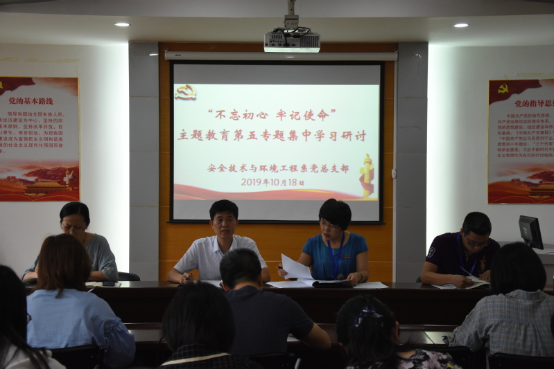 根據(jù)安全技術(shù)與環(huán)境工程系黨總支“不忘初心、牢記使命”主題教育學(xué)習(xí)研討方案安排,10月18日下午,安全技術(shù)與環(huán)境工程系召開主題教育第五專題集中學(xué)習(xí)研討會(huì)。
