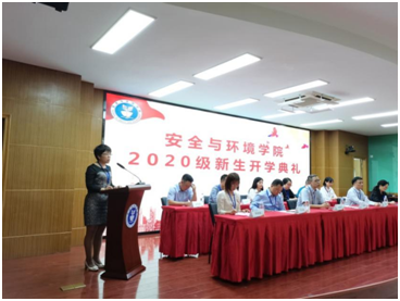 安全與環(huán)境學(xué)院副院長(主持工作)陳明仙副教授發(fā)表了熱情洋溢的致辭。他代表安全與環(huán)境學(xué)院熱烈歡迎新同學(xué)們的到來,并用了兩句話勉勵2020級新生:一是滴水匯聚而成江河,百川歸海方成其大。安全與環(huán)境學(xué)院的師生具有高度的責(zé)任感,還有神圣的使命感,希望2020級的新同學(xué),能夠快速融入安全與環(huán)境學(xué)院大家庭,一同匯聚成奔涌的河流,去迎接星辰大海。二是星光不負(fù)趕路人,時光不負(fù)有心人。希望同學(xué)在安全與環(huán)境學(xué)院的三年時光,能夠不負(fù)青春、不負(fù)夢想,學(xué)有所成、業(yè)有所精,成為能夠持續(xù)擔(dān)當(dāng)社會需求使命、德技并修的大國工匠。