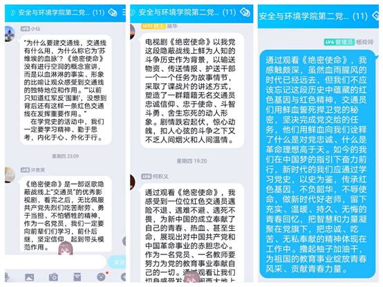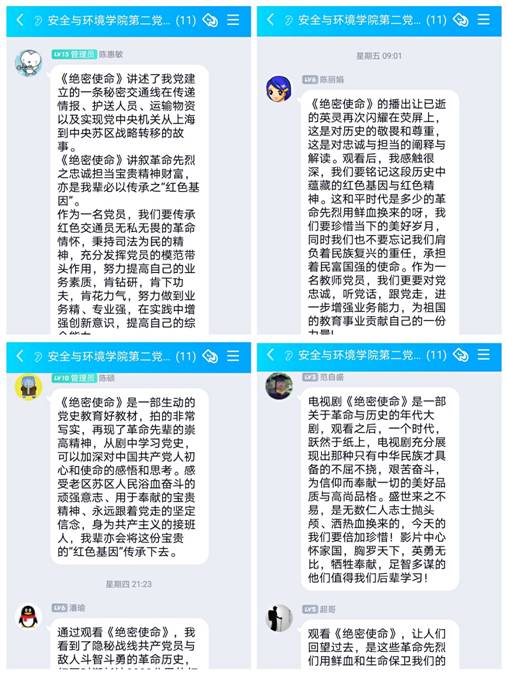 為深入開展黨史學習教育,進一步傳承紅色基因、賡續(xù)紅色血脈,在安全與環(huán)境學院黨總支的號召下,安全與環(huán)境學院各支部組織支部黨員教師觀看了革命歷史題材電視劇《絕密使命》。2021年4月18日,近代革命歷史劇《絕命使命》在央視一套黃金時段播出,安全與環(huán)境學院各支部組織全體黨員同志在線觀看該劇。作為慶祝中國共產(chǎn)黨成立100周年的優(yōu)秀電視劇,《絕密使命》講述中央地下交通線突破敵人封鎖,成功向中央蘇區(qū)輸送物資、傳送情報、護送干部的感人故事。紅色血脈的交通員們忠于職守、前赴后繼、勇于獻身的動人事跡,彰顯了這條“摧不垮打不爛的地下航線”熠熠生輝的忠誠精神,堅定信仰的交通員們舍家人、舍生命,彰顯了中華各族人民不畏犧牲,永遠跟黨走的偉大精神。