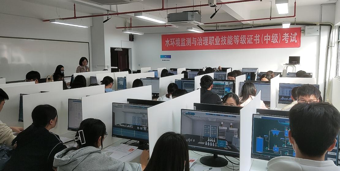 為貫徹落實(shí)《國(guó)家職業(yè)教育改革實(shí)施方案》和《關(guān)于在院校實(shí)施“學(xué)歷證書+若干職業(yè)技能等級(jí)證書”制度試點(diǎn)方案》精神,高效有序推進(jìn)1+X水環(huán)境監(jiān)測(cè)量與治理職業(yè)技能等級(jí)證書的實(shí)施,安全與環(huán)境學(xué)院環(huán)境工程技術(shù)專業(yè)先后組織完成了師資培訓(xùn)、考評(píng)員申報(bào)、學(xué)生教學(xué)培訓(xùn)、考點(diǎn)申報(bào)與建設(shè)、考證組織等工作,于2021年12月11日順利完成首次考證工作,共計(jì)43人參加考試。