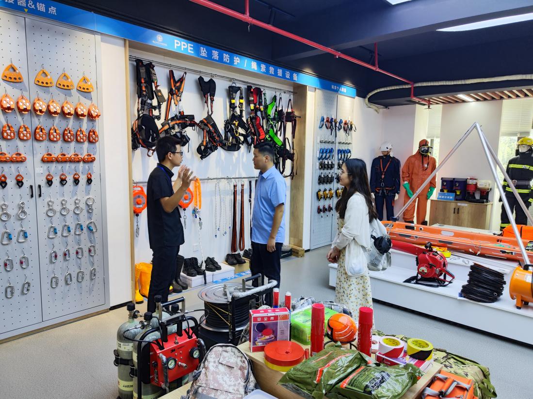施教授一行參觀了公共安全產(chǎn)教融合實(shí)訓(xùn)基地、智慧安全工地實(shí)訓(xùn)室、應(yīng)急救援訓(xùn)練中心等教學(xué)實(shí)訓(xùn)場(chǎng)所。