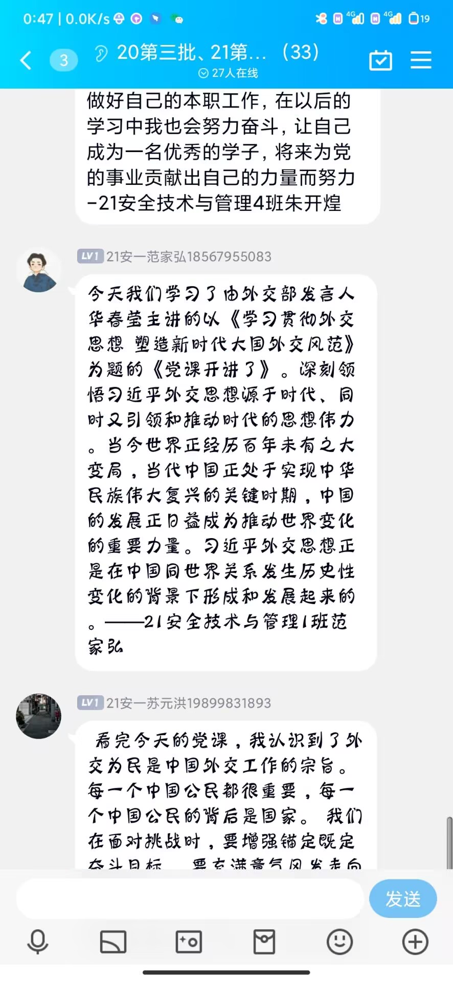在喜迎黨的二十大勝利召開(kāi)之際,為深入學(xué)習(xí)貫徹習(xí)近平新時(shí)代中國(guó)特色社會(huì)主義思想。中央組織部策劃,并聯(lián)合中央廣播電視總臺(tái)組織協(xié)調(diào)有關(guān)中央單位,制作了習(xí)近平新時(shí)代中國(guó)特色社會(huì)主義思想《黨課開(kāi)講啦》系列節(jié)目。安全與環(huán)境學(xué)院高度重視、廣泛動(dòng)員,積極組織師生于2022年10月14日晚在線觀看了《黨課開(kāi)講啦》節(jié)目。該節(jié)目以《學(xué)習(xí)貫徹習(xí)近平外交思想 推進(jìn)中國(guó)特色大國(guó)外交》為題,以“六個(gè)感悟”為主線,沿著習(xí)近平總書(shū)記的外交足跡,領(lǐng)會(huì)習(xí)近平外交思想的核心要義和實(shí)踐偉力。本期節(jié)目由外交部黨委委員 部長(zhǎng)助理,外交部發(fā)言人華春瑩擔(dān)任主講人,以《學(xué)習(xí)貫徹習(xí)近平外交思想 塑造新時(shí)代大國(guó)外交風(fēng)范》為主題,從“回答時(shí)代之問(wèn) 彰顯思想偉力”“植根人民情懷 心系天下大同”“精彩冬奧外交 盡顯大國(guó)風(fēng)范”三個(gè)方面,展現(xiàn)新時(shí)代中國(guó)特色大國(guó)外交風(fēng)范。此次線上學(xué)習(xí)在師生中引起熱烈反響