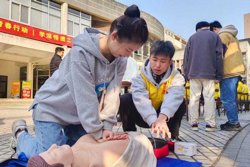 3月3日,安全與環(huán)境學(xué)院第一黨支部聯(lián)合福建藝術(shù)職業(yè)學(xué)院音樂(lè)學(xué)院學(xué)生黨支部在藝術(shù)職業(yè)學(xué)院校園開(kāi)展“學(xué)思踐悟黨的二十大、雷鋒精神永傳承”急救培訓(xùn)活動(dòng)。支部的教職工及學(xué)生黨員參加了此次培訓(xùn)活動(dòng),通過(guò)理論知識(shí)學(xué)習(xí)與實(shí)際操作演練,參加活動(dòng)的師生初步掌握了傷口包扎、徒手心肺復(fù)蘇技術(shù)及自動(dòng)體外除顫儀(簡(jiǎn)稱AED)的使用方法。