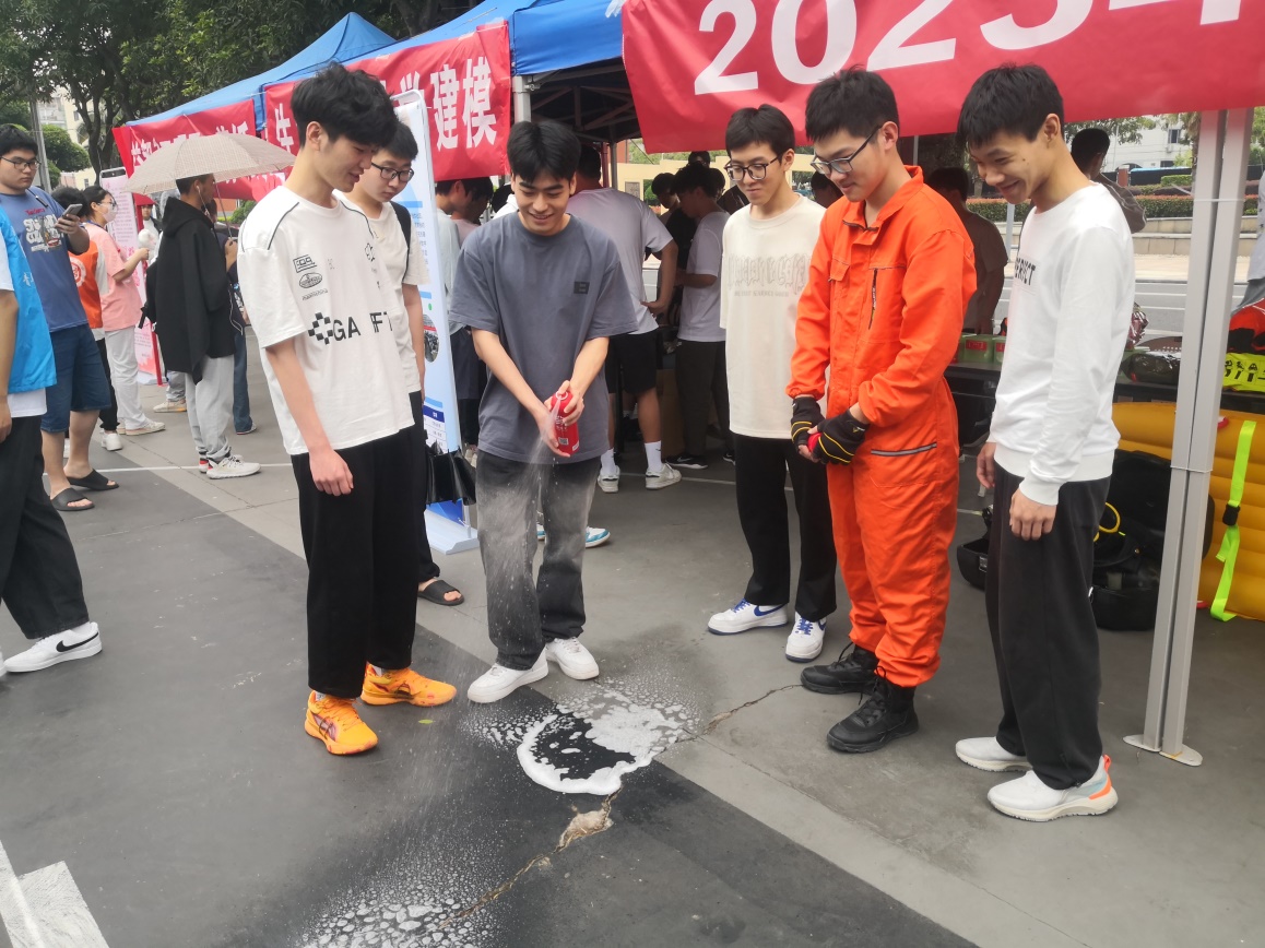 應(yīng)急救援技術(shù)專業(yè)學(xué)生展位前展示小型家庭滅火器使用