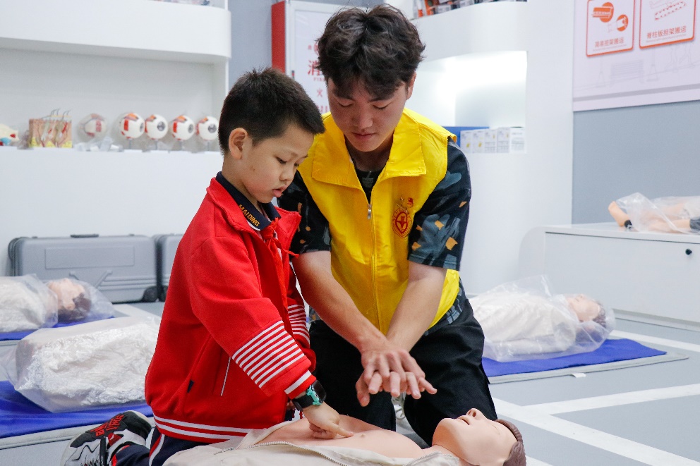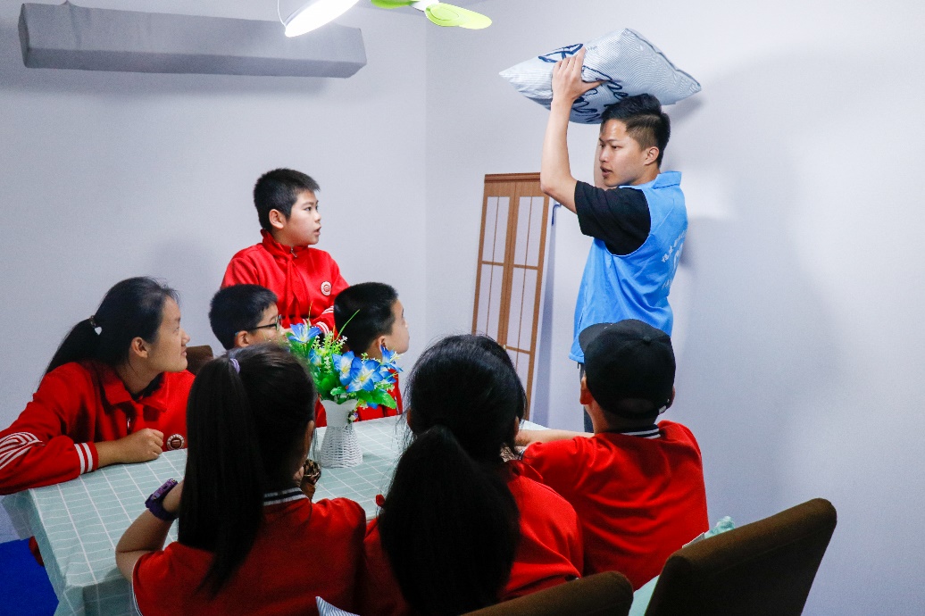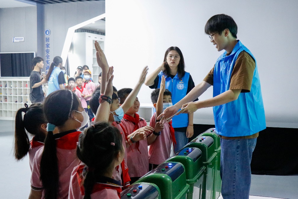 在安全與環(huán)境學(xué)院老師與志愿者們的精心組織和有序安排下,麥頂小學(xué)的同學(xué)們在安全救護實訓(xùn)區(qū)學(xué)習(xí)專業(yè)的急救技能;在安全體驗區(qū)學(xué)習(xí)地震、臺風(fēng)、電梯墜落等逃生技能;居家安全實訓(xùn)區(qū)了解常見家庭隱患及垃圾分類;交通安全實訓(xùn)區(qū)辨識交通標(biāo)志、貨車行車盲區(qū)……活動過程中,由志愿者們引導(dǎo),小同學(xué)們體驗了各個模塊項目。志愿者以通俗易懂的講解方式,積極與小同學(xué)們互動,在體驗中學(xué)習(xí)到安全知識。