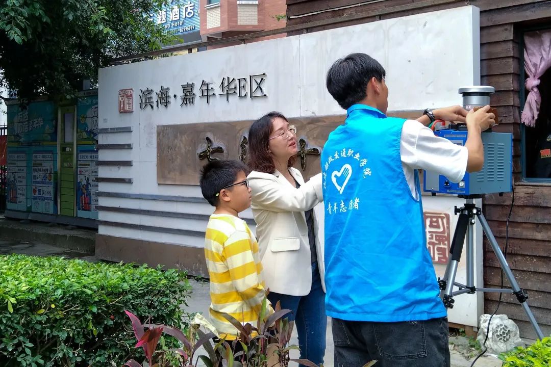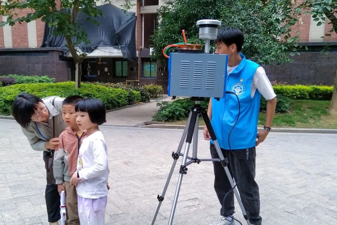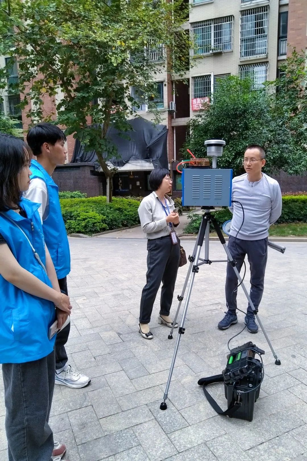 一進(jìn)社區(qū),陳健老師就帶著同學(xué)們在小區(qū)大門和小區(qū)中心位置進(jìn)行了空氣二氧化氮(NO2)氣體吸收采樣和PM10采樣,隨后送往實(shí)驗(yàn)室定量檢測。同時(shí)在小區(qū)內(nèi)進(jìn)行現(xiàn)場噪聲監(jiān)測。監(jiān)測設(shè)備引起居民的好奇圍觀,老師和同學(xué)們也熱情而耐心地向居民科普空氣中二氧化氮、PM10和環(huán)境噪聲的監(jiān)測方法和危害性。