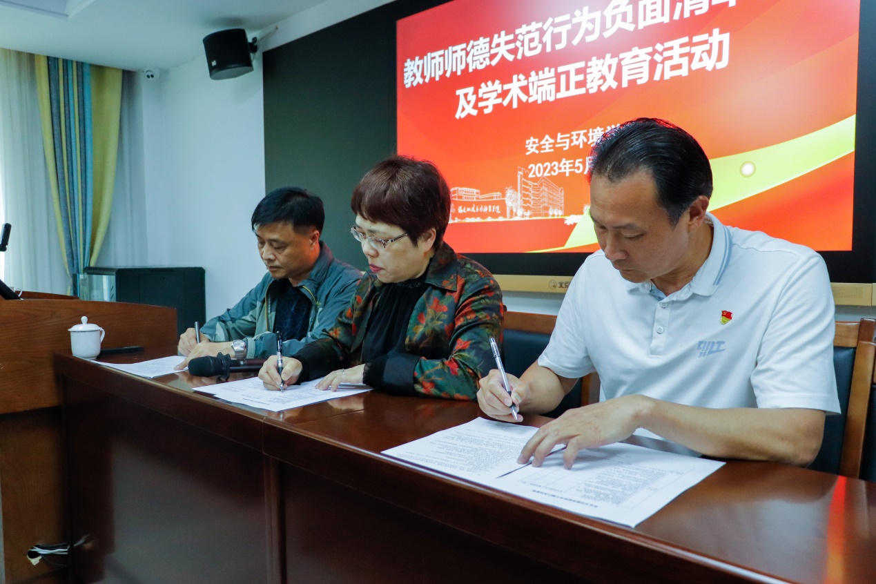 最后,教師們簽署了《教師師德失范行為負(fù)面清單承諾書(shū)》、《教師學(xué)術(shù)不端自查表》。