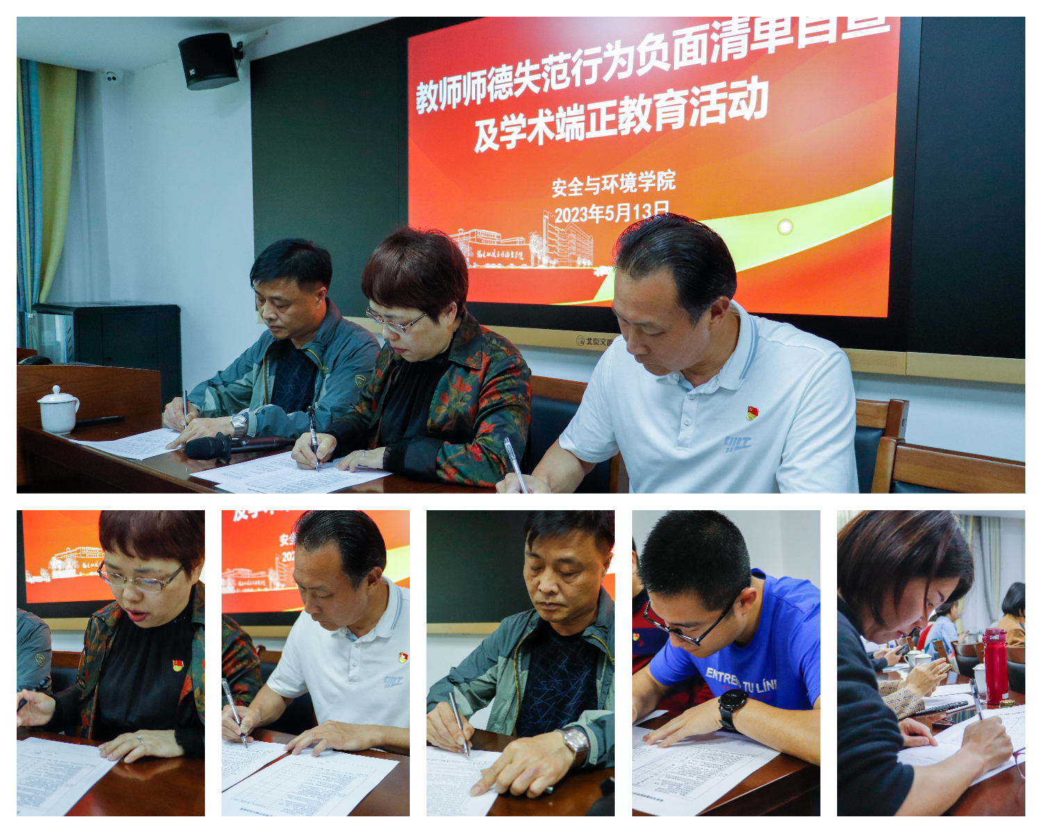 全體教職工公開表態(tài)承諾,并簽訂《安全與環(huán)境學(xué)院教師師德失范行為負(fù)面清單自查承諾書》和《學(xué)術(shù)不端行為自查情況表》。