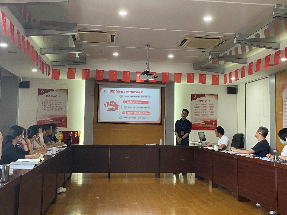 陳明仙院長結(jié)合雙高建設(shè)和學(xué)院發(fā)展,從建設(shè)中國特色社會主義教育強國、習近平總書記關(guān)于職業(yè)教育的論述和推進職業(yè)教育高質(zhì)量發(fā)展舉措三個方面展開闡述,指出教育現(xiàn)代化發(fā)展的歷史性成就和格局性變化充分證明了中國特色社會主義教育發(fā)展道路的正確性。仰觀大局,教育的使命無比光榮、責任無比重大,要求大家要敢于擔當作為,勇于攻堅克難,在團結(jié)中奮進,在競爭中超越,在推動現(xiàn)代職業(yè)教育高質(zhì)量發(fā)展的新征程中貢獻力量。
