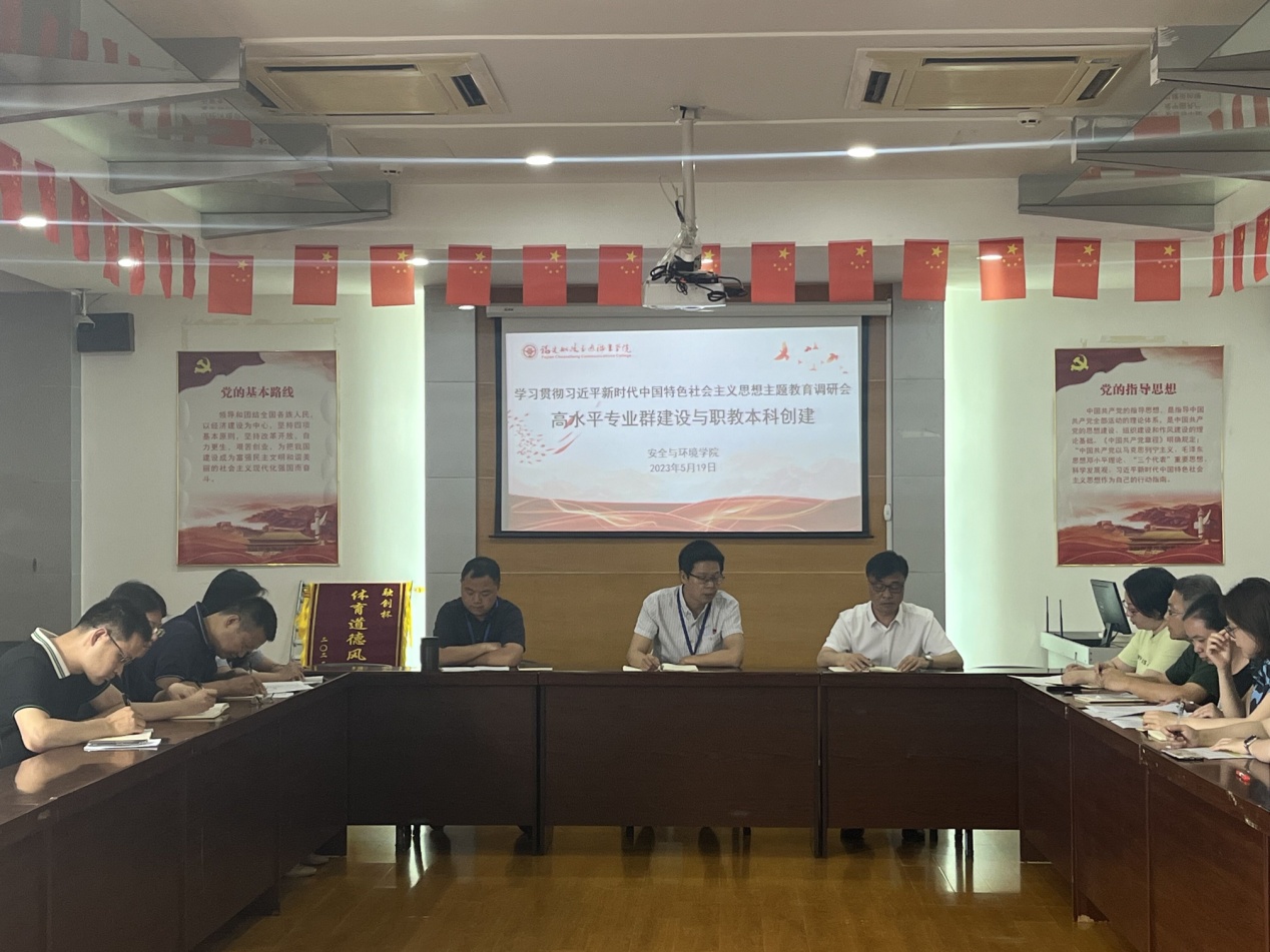 為扎實推動學(xué)習(xí)貫徹習(xí)近平新時代中國特色社會主義思想主題教育走深走實,5月19日,安全與環(huán)境學(xué)院召開高水平專業(yè)群建設(shè)與職教本科創(chuàng)建調(diào)研會。學(xué)院院長陳明仙教授主持會議,副院長陳榕、副院長范自盛,安全技術(shù)與管理專業(yè)、環(huán)境工程技術(shù)專業(yè)、應(yīng)急救援技術(shù)專業(yè)教研室主任和骨干教師參加。