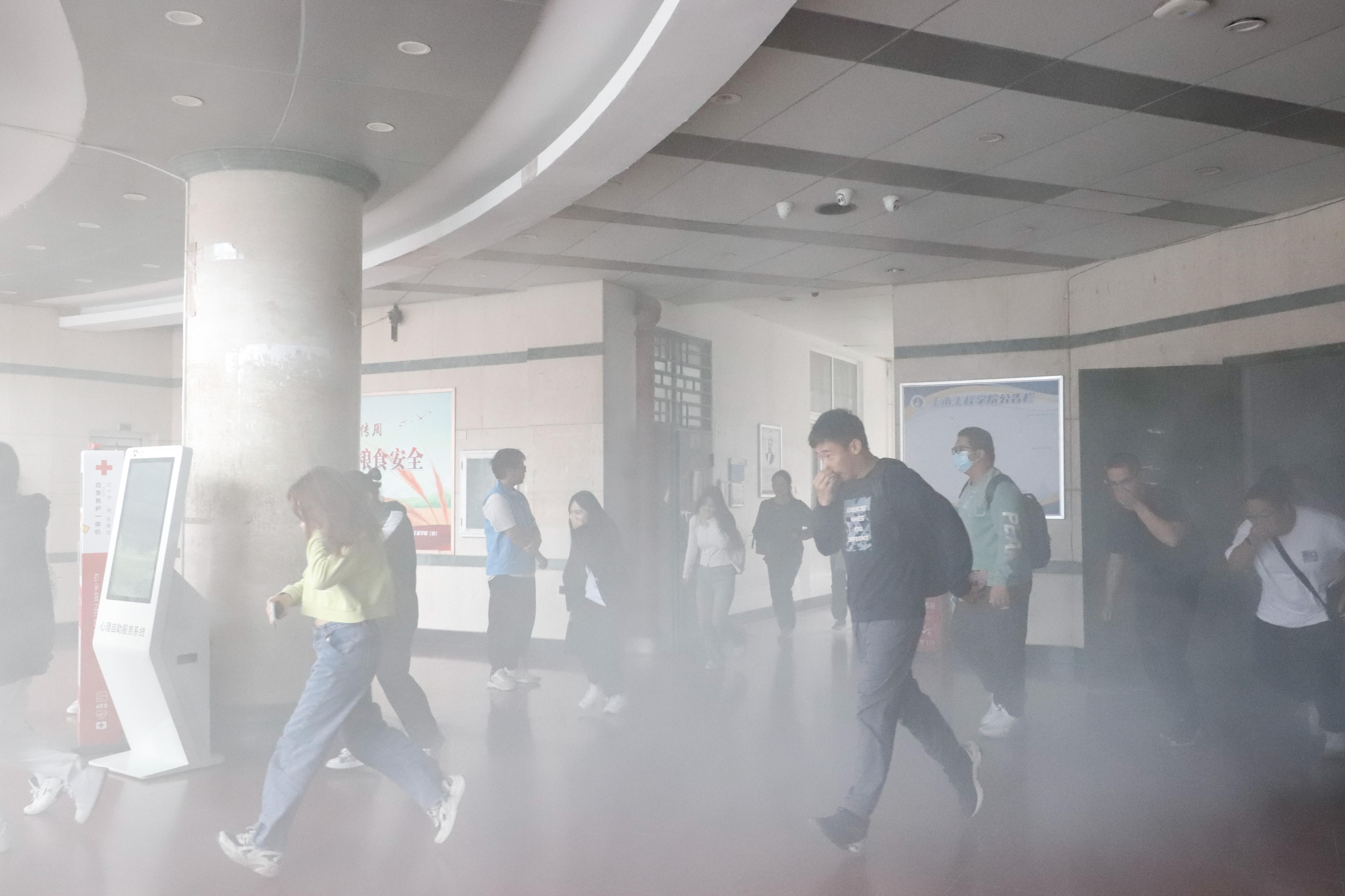 在演練開始前,工作人員為同學們講解了消防安全基礎知識及安全逃生路線,讓大家充分認識到火災的危險性。警笛響徹云霄,煙霧彈噴出一股股濃煙,同學們一個個保持冷靜,捂住口鼻,彎腰低姿,按照指定路線有序地進行疏散,快速安全地抵達了操場。緊接著,朱秋明同學向大家講解滅火器的正確使用方法,隨后讓同學們分批進行滅火器的使用體驗。最后,陳火城老師為同學們普及了宿舍的消防常識、用電的安全注意事項等內容,徐林悅慰老師對本次逃生演練進行了總結,并提醒同學們要不斷增強安全意識,正確掌握在危險中迅速逃生、自救、互救的基本方法。