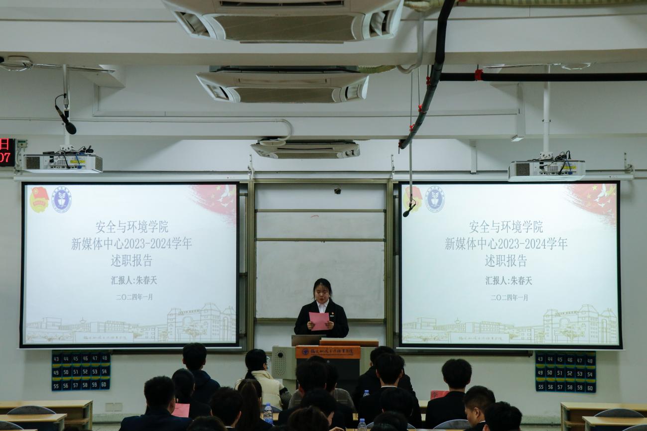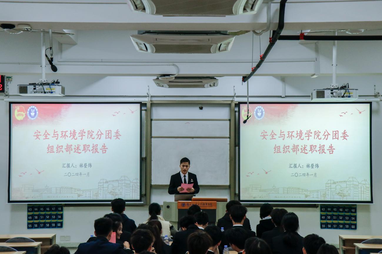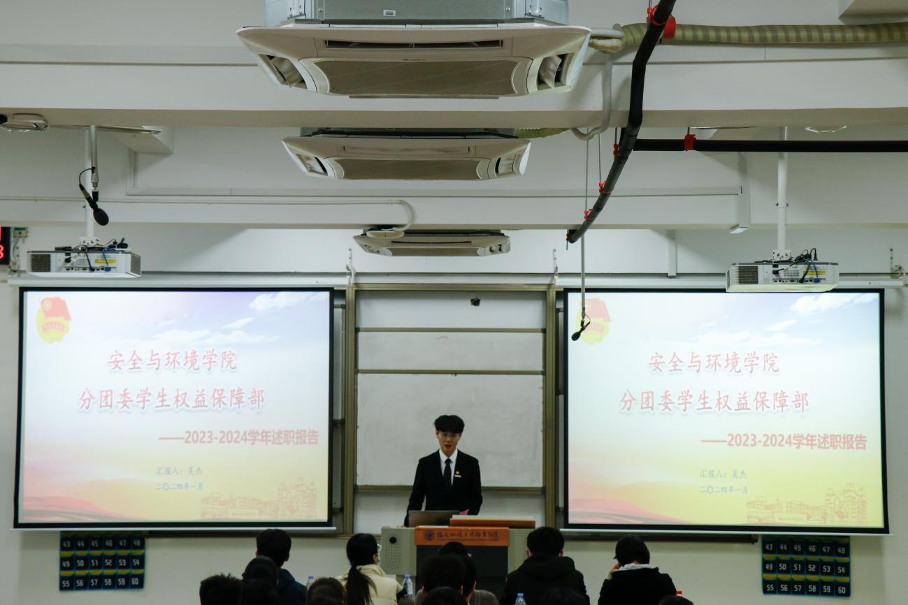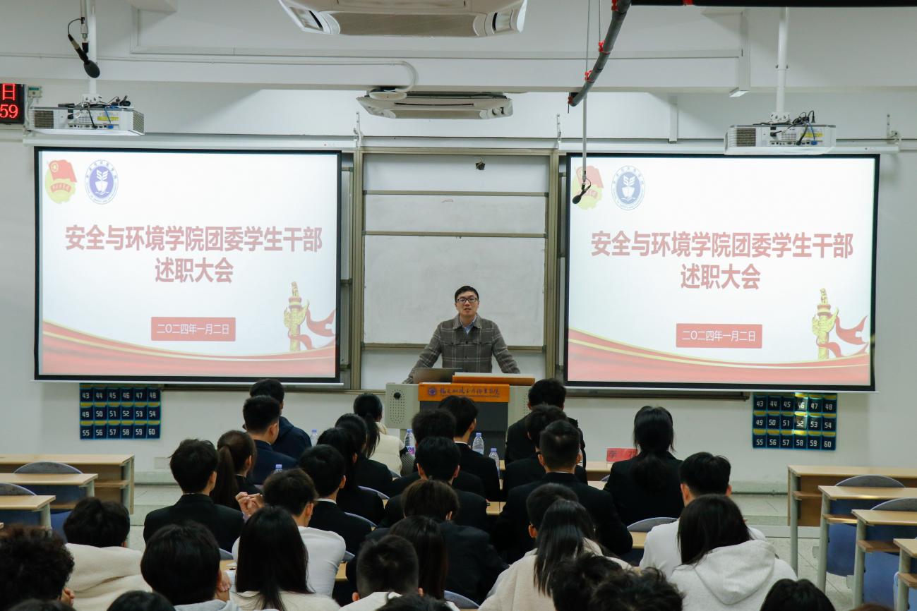 為深入學習貫徹習近平總書記關于青年工作的重要思想,進一步推動學生組織建設,提高學生干部綜合素質(zhì),總結(jié)本學年工作實效,規(guī)劃下一年度工作,2024年1月2日安全與環(huán)境學院在創(chuàng)新樓201教室組織召開團委學生干部述職大會。安全與環(huán)境學院團委書記彭志允、團委組織委員張曉珊、團委宣傳委員李花、輔導員牟鵬飛、輔導員何瀚深蒞臨本次會議。