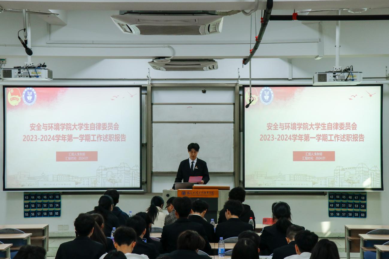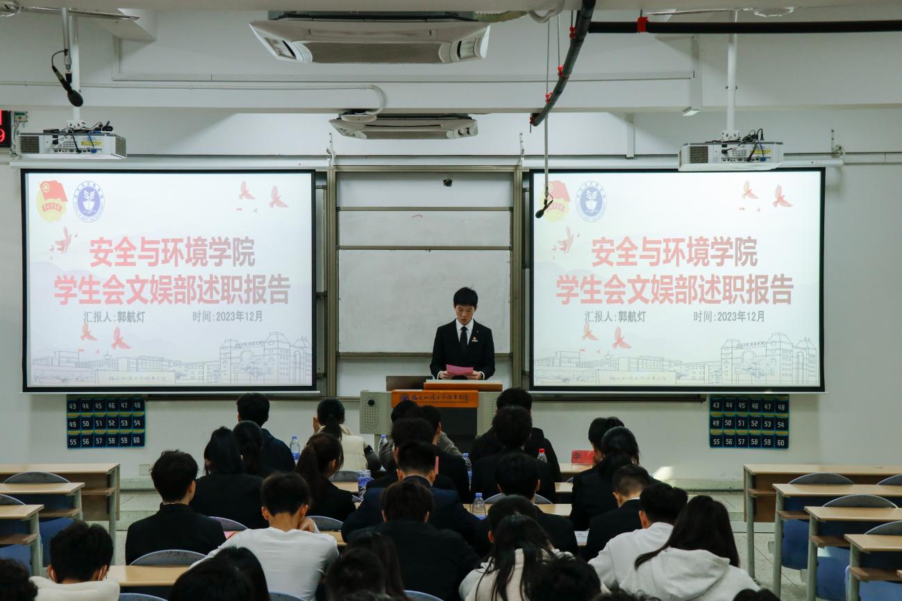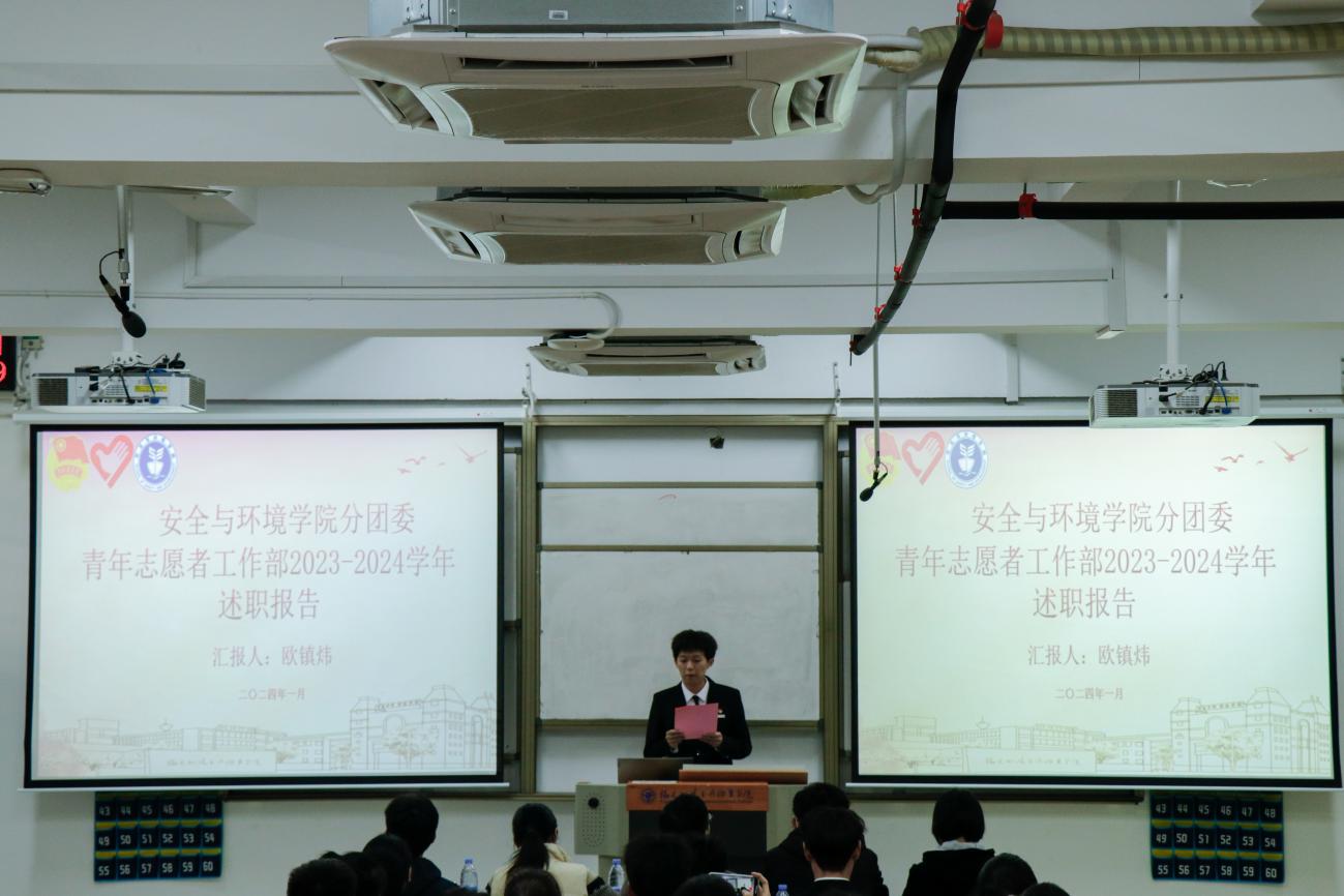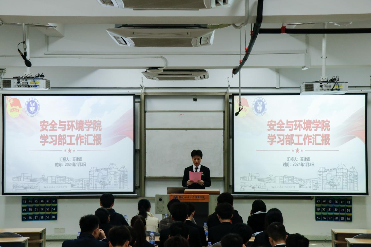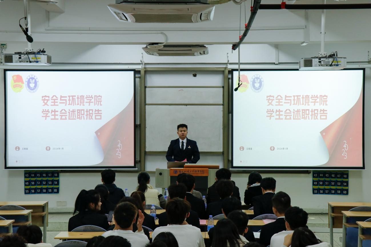 為深入學習貫徹習近平總書記關于青年工作的重要思想,進一步推動學生組織建設,提高學生干部綜合素質(zhì),總結(jié)本學年工作實效,規(guī)劃下一年度工作,2024年1月2日安全與環(huán)境學院在創(chuàng)新樓201教室組織召開團委學生干部述職大會。安全與環(huán)境學院團委書記彭志允、團委組織委員張曉珊、團委宣傳委員李花、輔導員牟鵬飛、輔導員何瀚深蒞臨本次會議。