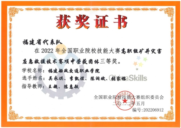 應(yīng)急救援技術(shù)專業(yè)學(xué)生參加國家和省級救援類競賽獲獎證書