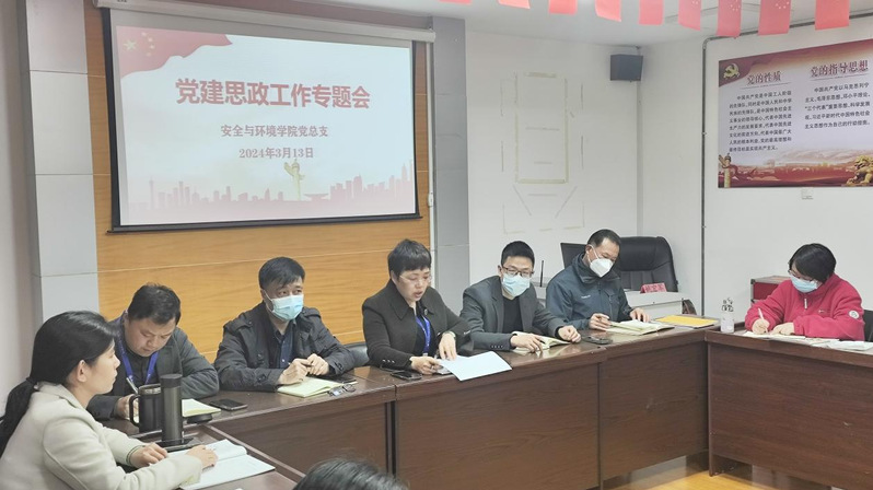 2024年3月13日,安全與環(huán)境學(xué)院召開2024年黨建思政工作專題會議,傳達(dá)了2024年學(xué)校黨建工作要點(diǎn),并就黨委組織部、黨委宣傳統(tǒng)戰(zhàn)部近期重點(diǎn)工作進(jìn)行了具體部署。會議由學(xué)院黨總支書記鄭雪琴同志主持,學(xué)院黨政領(lǐng)導(dǎo)、副處級組織員、總支委員、各支部委員和全體輔導(dǎo)員參加會議。