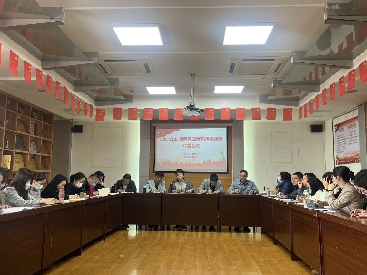 為鞏固拓展學(xué)習(xí)貫徹習(xí)近平新時(shí)代中國(guó)特色社會(huì)主義思想主題教育成果,認(rèn)真學(xué)習(xí)貫徹習(xí)近平總書(shū)記關(guān)于教育的重要論述和指示批示精神,進(jìn)一步加強(qiáng)教師思想政治教育和師德師風(fēng)建設(shè)工作,落實(shí)立德樹(shù)人根本任務(wù),引導(dǎo)教師堅(jiān)守教育初心,踐行育人使命,規(guī)范從教行為,2024年3月27日下午,安全與環(huán)境學(xué)院在創(chuàng)新樓909會(huì)議室召開(kāi)2024年教師思想政治和師德師風(fēng)專題會(huì)議,學(xué)院全體教職工參加。