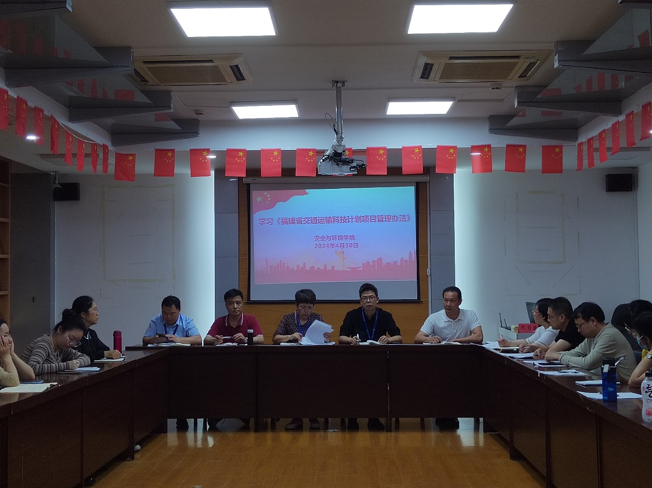 為進一步統(tǒng)籌交通科技資源,規(guī)范交通科技計劃項目管理,提高科技項目的管理效率和實施成效。2024年4月30日下午,安全與環(huán)境學院組織全體教職工學習《福建省交通運輸科技計劃項目管理辦法》。