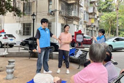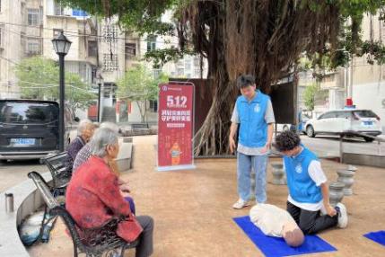 在防災減災活動現(xiàn)場,志愿者們向居民們講解遇到事故災難和自然災害時應如何開展自救、互救,指導大家學習掌握自救技能,提高防災減災知識的知曉率。