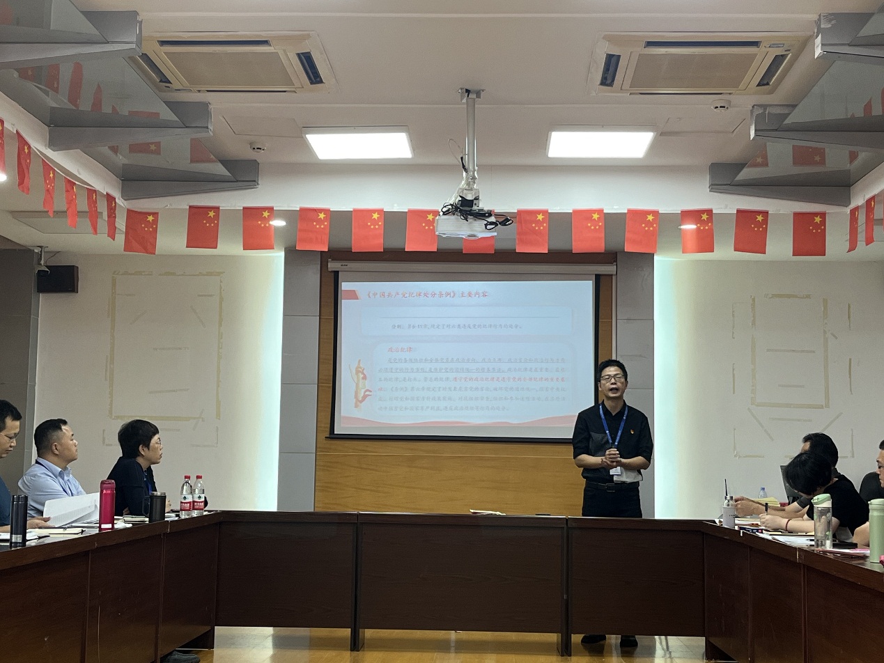 為扎實(shí)開展好黨紀(jì)學(xué)習(xí)教育,引導(dǎo)黨員教師把遵規(guī)守紀(jì)刻印在心,內(nèi)化為言行準(zhǔn)則,始終以忠誠(chéng)干凈擔(dān)當(dāng)?shù)某跣氖姑?,推?dòng)各項(xiàng)工作取得實(shí)實(shí)在在的成效,6月19日,安全與環(huán)境學(xué)院陳明仙院長(zhǎng)以《學(xué)紀(jì)、明紀(jì)、守紀(jì)》為題講授了黨紀(jì)學(xué)習(xí)教育專題黨課,學(xué)院全體教師參加。