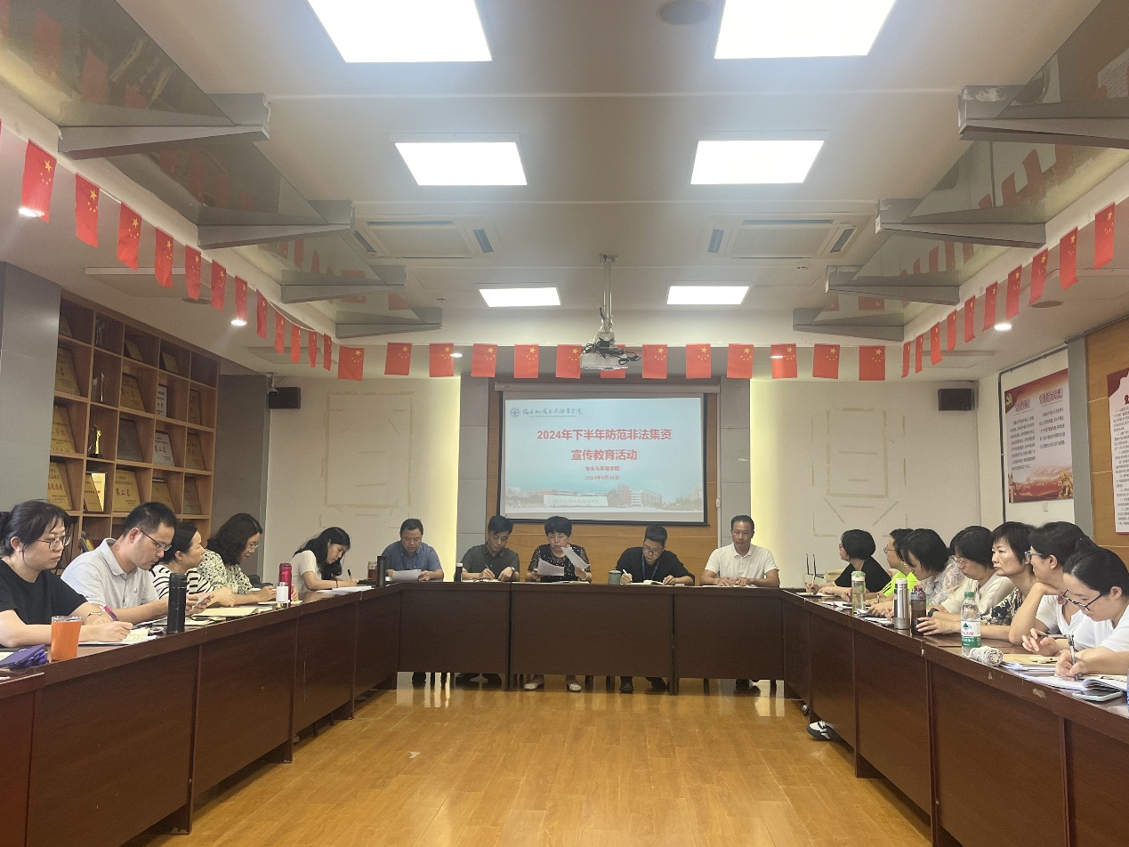 為進(jìn)一步加大防范非法集資宣傳力度,切實(shí)維護(hù)安全與環(huán)境學(xué)院全體教職工生命財(cái)產(chǎn)安全,提高全體教職工對(duì)非法集資危害性的認(rèn)識(shí),強(qiáng)化風(fēng)險(xiǎn)意識(shí)和防范能力,培養(yǎng)正確投資理念,增強(qiáng)全體教職工防范非法集資的意識(shí)和能力。2024年9月18日下午,安全與環(huán)境學(xué)院開(kāi)展2024年下半年防范非法集資宣傳教育活動(dòng)。