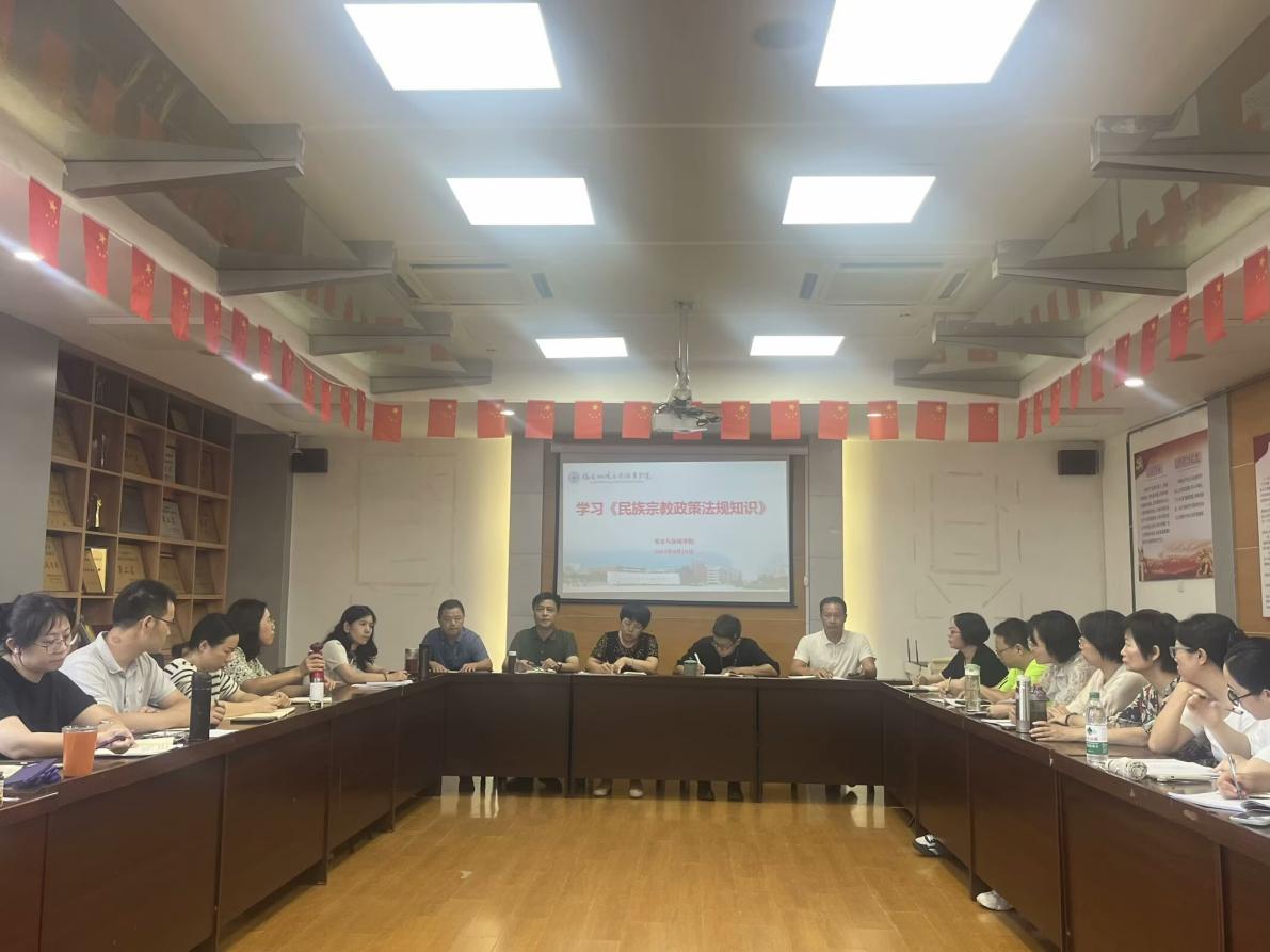 學(xué)習(xí)活動(dòng)中,安全與環(huán)境學(xué)院黨總支書記鄭雪琴同志介紹和解讀了《中共中央關(guān)于進(jìn)一步全面深化改革、推進(jìn)中國式現(xiàn)代化的決定》和《民族宗教政策法規(guī)知識(shí)》的主要內(nèi)容,并結(jié)合學(xué)院實(shí)際工作,強(qiáng)調(diào)在深化改革過程中應(yīng)遵循的原則,包括堅(jiān)持黨的全面領(lǐng)導(dǎo)、堅(jiān)持以人民為中心、堅(jiān)持守正創(chuàng)新、堅(jiān)持以制度建設(shè)為主線、堅(jiān)持全面依法治國以及堅(jiān)持系統(tǒng)觀念等內(nèi)容。同時(shí),鼓勵(lì)廣大教職工充分學(xué)習(xí)和了解民族宗教政策法規(guī)知識(shí),營造民族團(tuán)結(jié)和社會(huì)和諧的良好校園氛圍,提高師生民族宗教法律法規(guī)意識(shí),增強(qiáng)自覺抵御非法宗教、邪教,抵制境外敵對(duì)勢力利用宗教進(jìn)行滲透的能力等。