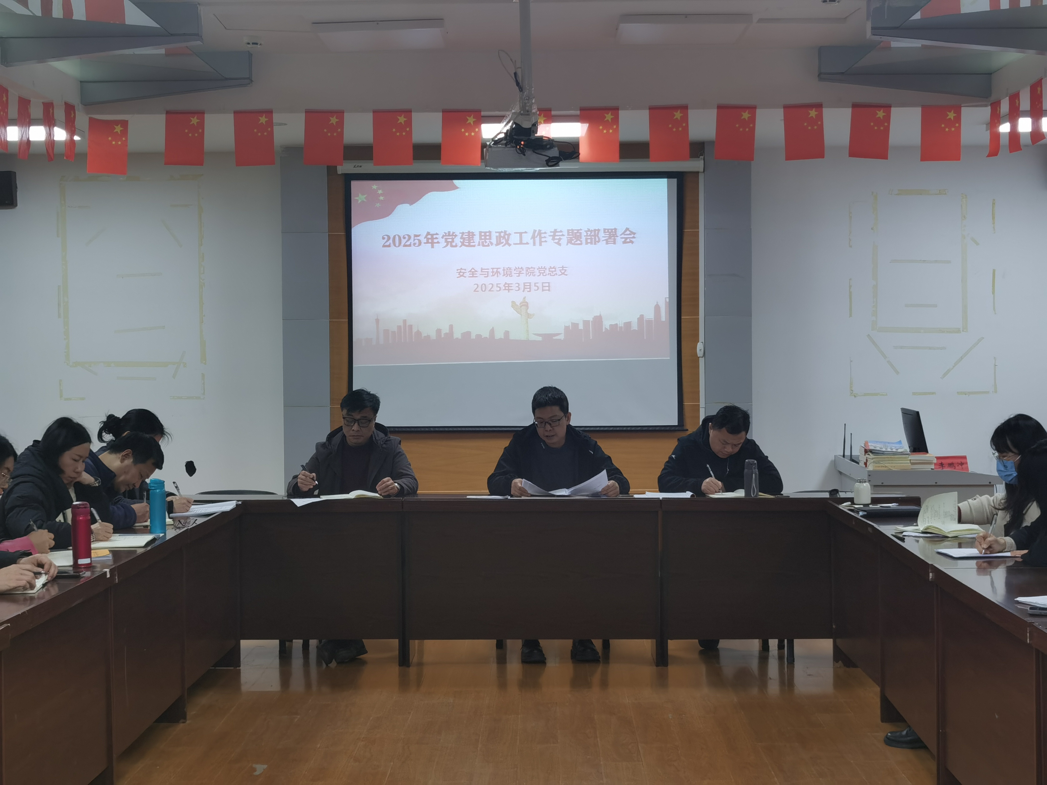 2025年3月5日,安全與環(huán)境學(xué)院召開(kāi)2025年黨建思政工作專(zhuān)題部署會(huì),會(huì)議由學(xué)院院長(zhǎng)陳明仙同志主持,學(xué)院黨政領(lǐng)導(dǎo)、總支委員和各支部委員參加會(huì)議。