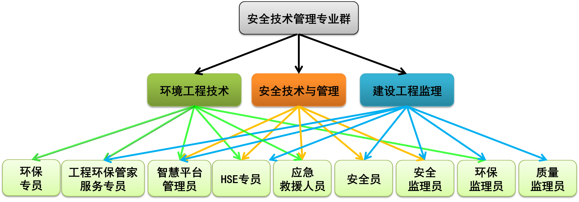 安全技術(shù)與管理專(zhuān)業(yè)群是面向交通工程建設(shè)、監(jiān)理、評(píng)價(jià)咨詢(xún)、監(jiān)管、運(yùn)營(yíng)等領(lǐng)域用人單位,以立德樹(shù)人為根本,突出安全、環(huán)保、質(zhì)量三大關(guān)鍵意識(shí);培養(yǎng)具備安全評(píng)價(jià)、監(jiān)理及管理控制,環(huán)境評(píng)價(jià)、監(jiān)測(cè)及監(jiān)理,質(zhì)量監(jiān)理及控制,工程智慧化技術(shù)及管理等復(fù)合能力,具有可持續(xù)發(fā)展能力的安全員、監(jiān)理員(質(zhì)量監(jiān)理、安全監(jiān)理、環(huán)保監(jiān)理等)、環(huán)境專(zhuān)員、健康安全環(huán)境(QHSE)專(zhuān)員、安全環(huán)境評(píng)價(jià)人員、應(yīng)急救援人員、智慧工地管理員、工程環(huán)保管家服務(wù)專(zhuān)員等高端技術(shù)技能人才,為“交通強(qiáng)國(guó)”和區(qū)域經(jīng)濟(jì)社會(huì)發(fā)展提供優(yōu)質(zhì)人才資源支撐。
