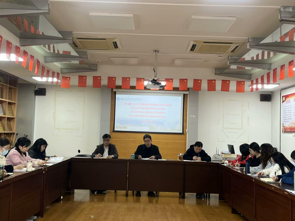 會議第一項學(xué)習(xí)為第二十八次全國高校黨的建設(shè)工作會議精神。高校黨建是新時代教育事業(yè)發(fā)展的根本保證。全體教師深入領(lǐng)會“堅持和加強(qiáng)黨對高校的全面領(lǐng)導(dǎo)”的核心要求,確保“為黨育人、為國育才”落到實處。