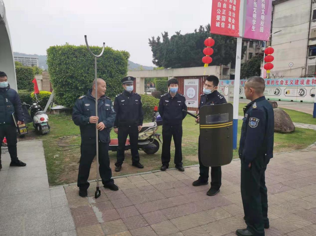 倉(cāng)山公安分局巡特警大隊(duì)實(shí)地察看了學(xué)校保安室、門衛(wèi)室、視頻監(jiān)控室等重點(diǎn)部門,了解我校反恐防范措施落實(shí)情況,高度評(píng)價(jià)了我校反恐工作,并就落實(shí)好反恐怖主體責(zé)任提出了明確要求。