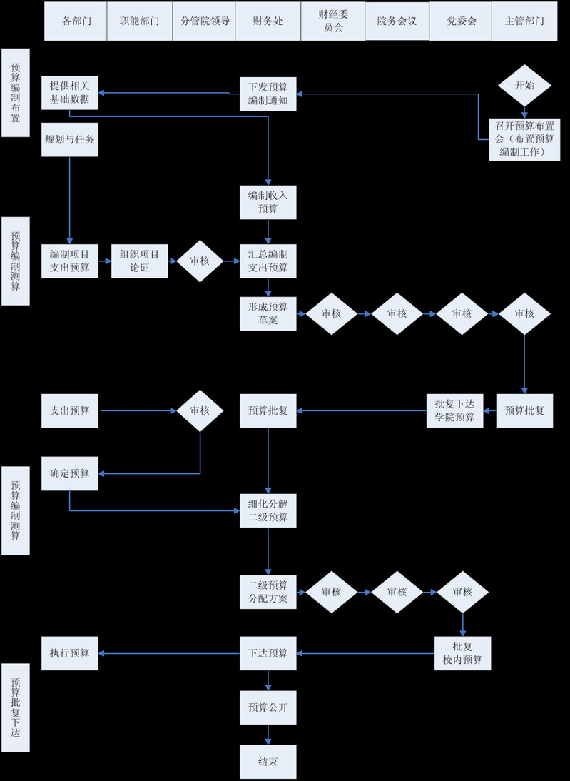 職能部門審核意見 → 分管院領(lǐng)導(dǎo)審批 →財務(wù)處匯總 → 分管財務(wù)院領(lǐng)導(dǎo)審批 → 財務(wù)處根據(jù)指示調(diào)整。