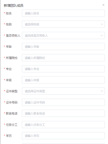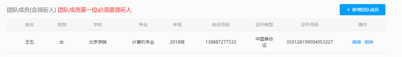 (2)填寫團(tuán)隊(duì)成員(團(tuán)隊(duì)成員第一位必須是領(lǐng)銜人),點(diǎn)擊右上角“+新增團(tuán)隊(duì)成員”