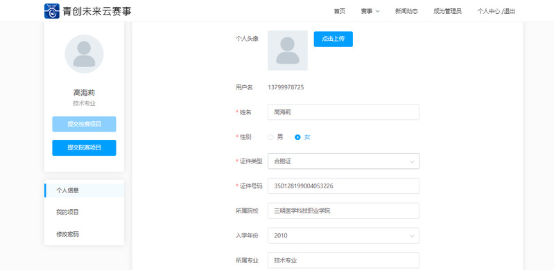 三步:登錄成功,進(jìn)入大賽平臺(tái)“個(gè)人資料”主頁。